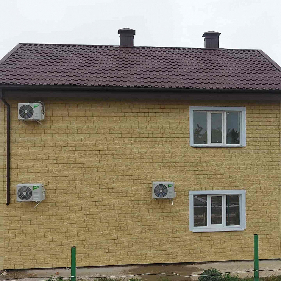 Слоновая кость — один из самых востребованных оттенков в коллекции. Он придает рельефу панелей визуальную глубину и отлично подходит для основного облицовочного материала. Беспроигрышный выбор для южной стороны улицы и загородных домов под кровлей в спокойных коричневых тонах.